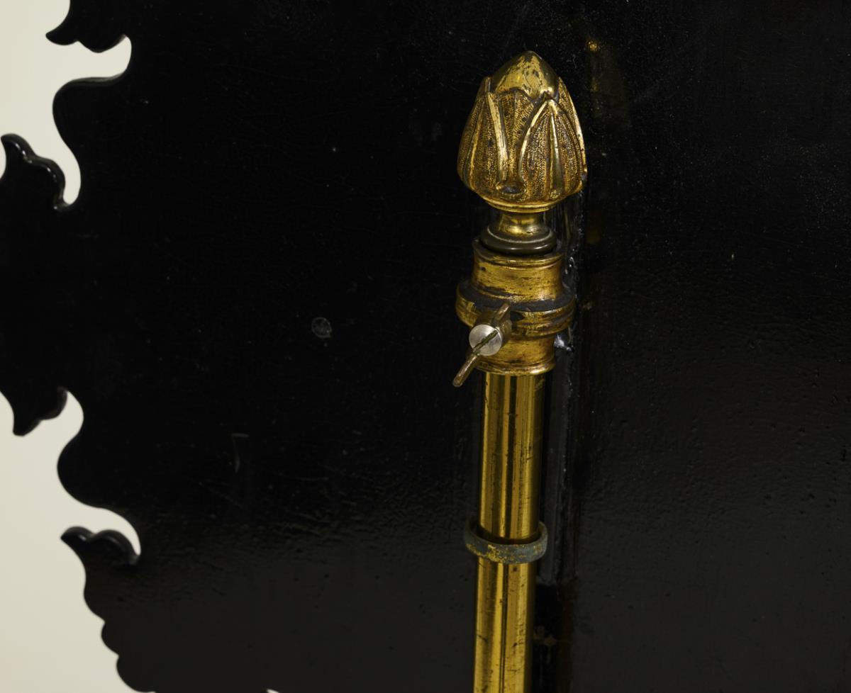 Fireplace screens were especially popular in the 18th century, because the wax-based makeup that women and men wore, had to be protected from heat. So someone standing or sitting in front of an open fire could be relatively sure that their makeup would stay in place because of the height-adjustable screen.