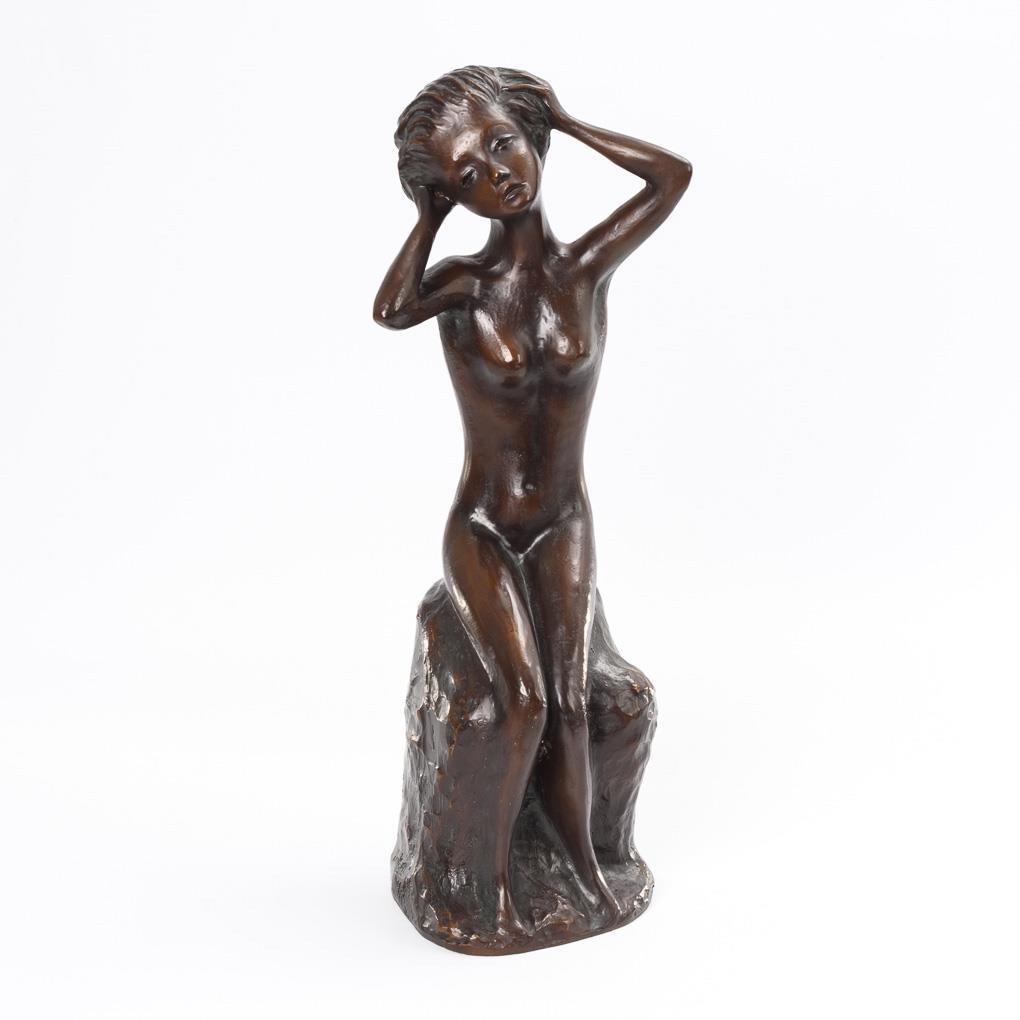 Sitting female nude in expressive gesture. In addition, signed by the artist certificate to the sculpture with title and counting 4/6. Some minor patina damage.