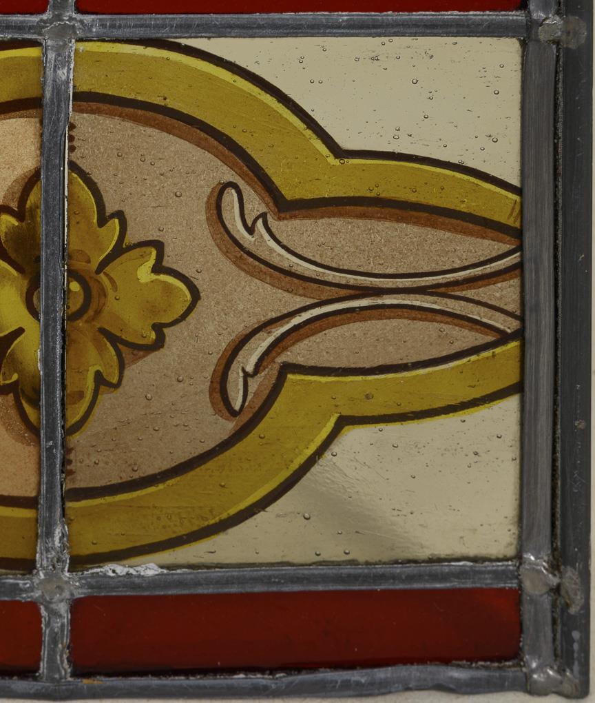 Pair of large painted leaded glass windows.