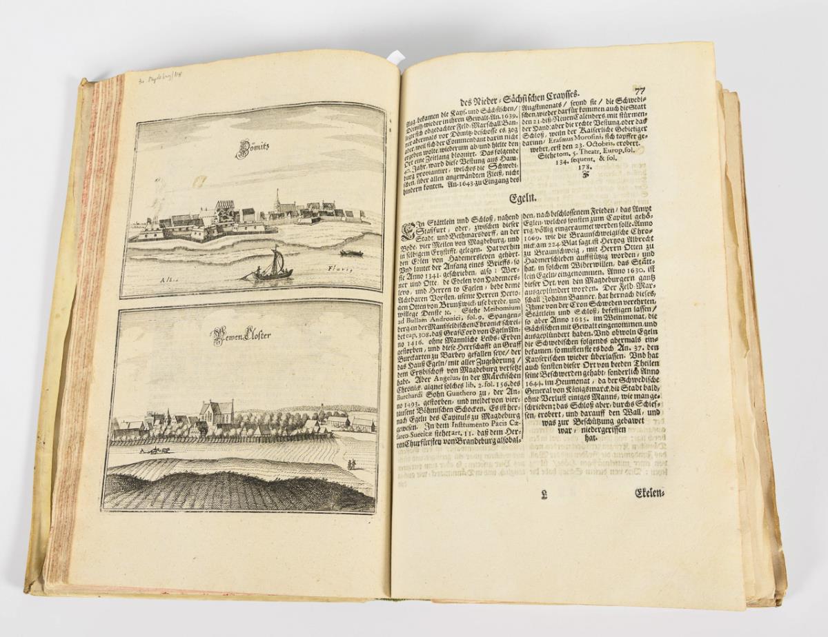 Lower Saxony County: 242, (5) / Westphalia County: 94, (4) pages. Together 21 double-page plans and views, 11 single-page and 3 folding plates. In vellum binding. Not complete, some pages loose.