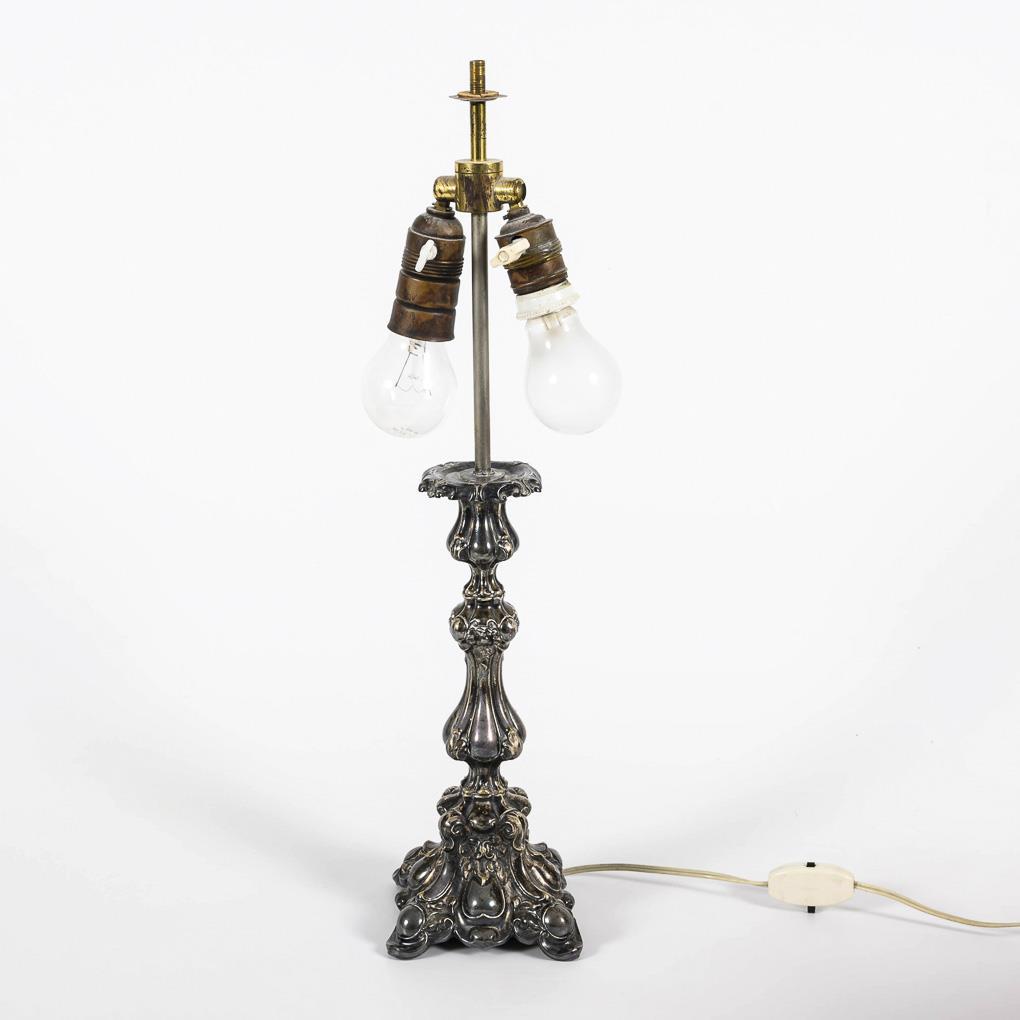 Table lamp with silver plated base.