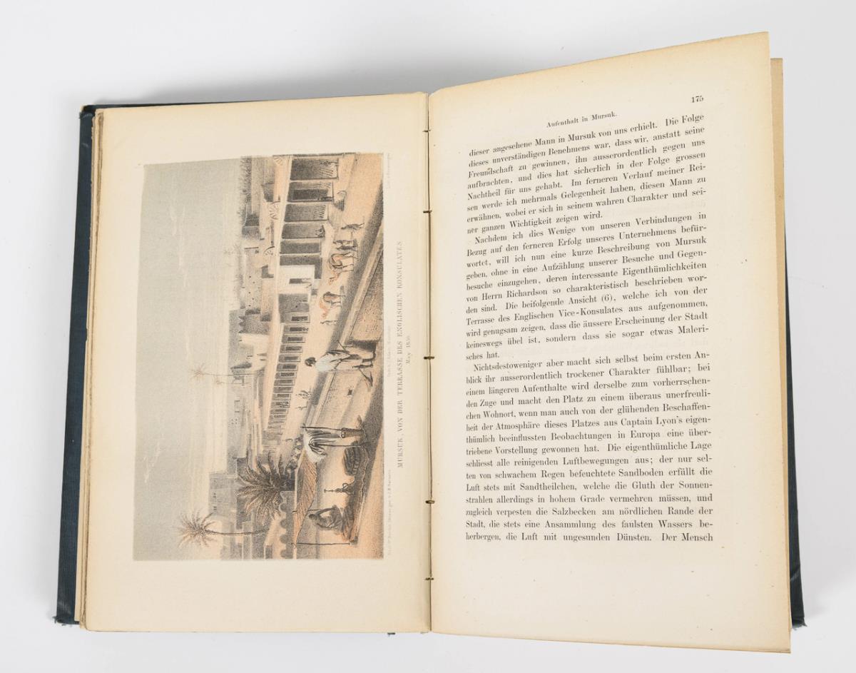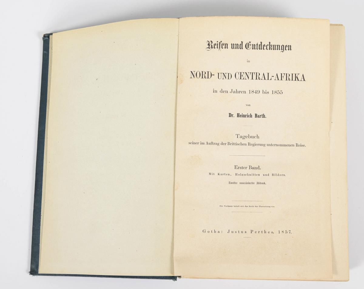 Rare original edition. "The meticulous German is considered the father of classical African exploration. He crosses deserts, mountains and virgin forests, explores Lake Chad, Niger and Timbuktu. In five years he roams 20000 kilometers through the Sahara." (National Geographic.com).