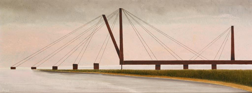 Die filigrane Brücke unter weitem Himmel.