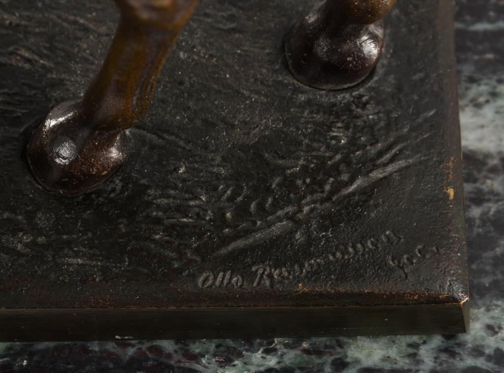Bronze patiniert, schwarz-grüner Marmor-Sockel.Bezeichnet.H 22,5 cm, gesamt 32,5 x 22 x 9 cm.