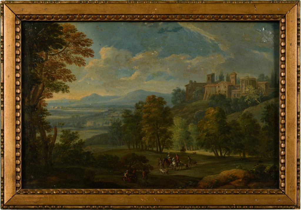 Landschaft mit höfischer Jagdgruppe