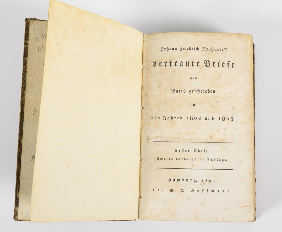 "After the publication of his Vertraute Briefe (1792), he was dismissed from his post as court kapellmeister in 1794 as a revolutionary sympathizer without a pension, and thereupon lived first in Hamburg ..., Another trip to Paris (1803) considerably dampened his enthusiasm for the French and their policies: Reichardt became an opponent of Napoléon Bonaparte." (wikipedia).