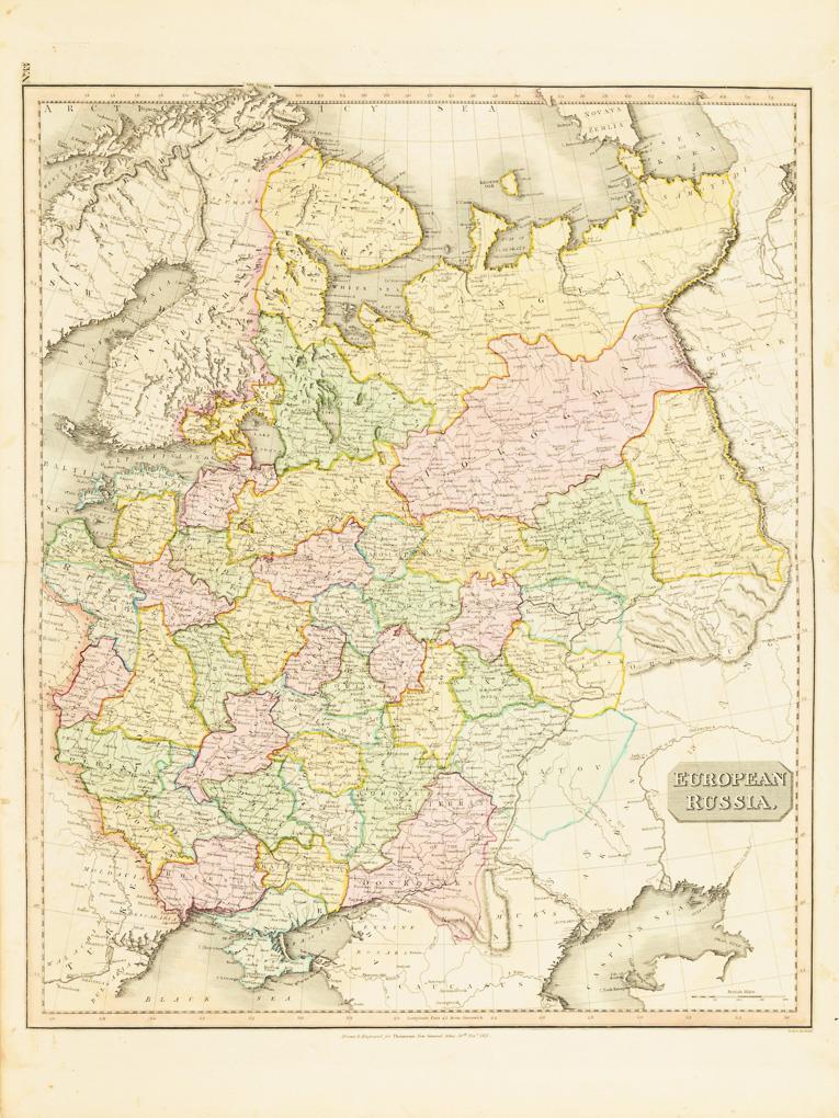 Detailed historical map of European Russia "European Russia", from "New General Atlas", 1817. Buck crease, foxing.