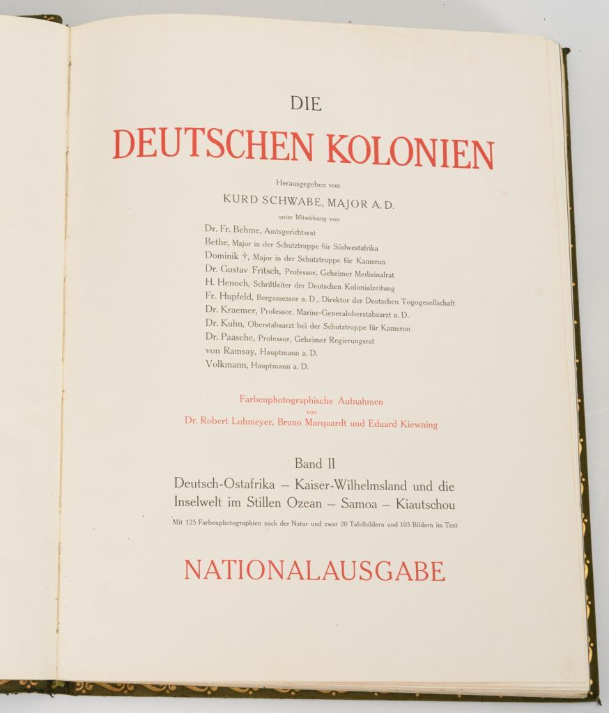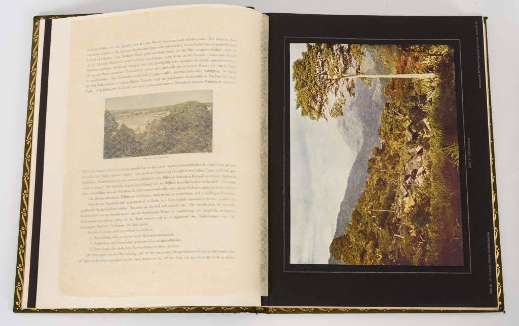 Nationalausgabe. Prachteinband in goldgeprägtem, grünem Leder mit Silberapplikation und Goldschnitt. 160 und 165 Seiten, mit zahlreichen, teils farbigen Fotografien. Stärkere Alters- und Gebrauchsspuren, Schuber defekt.