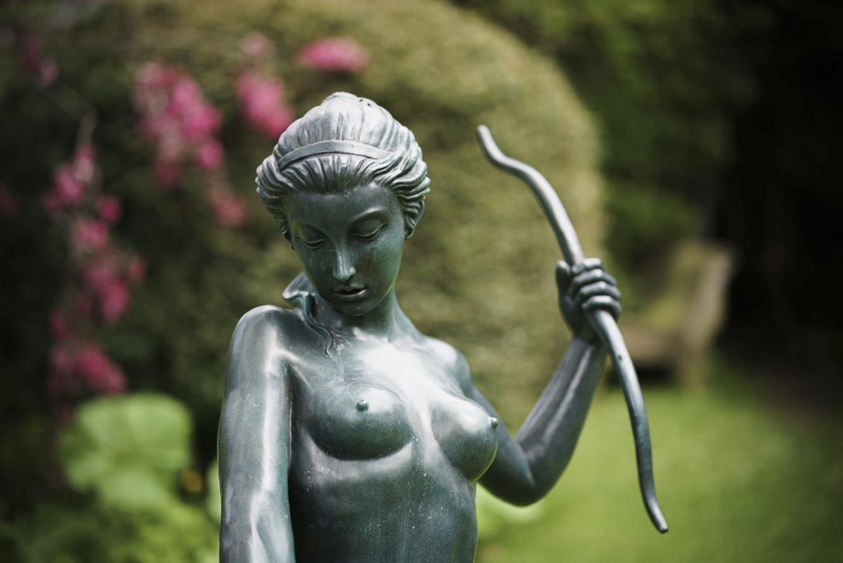 Large Garden Bronze: Diana with Hunting Dog