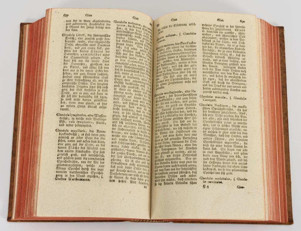 "...das alle Benennungen und Kunstwörter, welche der Zergliederungs- und Wundarzneywissenschaft eigen sind, deutlich und vollständig erkläret und die Curen Binden Werkzeuge auch andere Mittel der Kunst Operationen und alle Handgriffe genau beschreibet zu allgemeinem Gebrauch von einer Gesellschaft erfahrener Ärzte herausgegeben und mit einer Vorrede begleitet von Herrn Albrecht von Haller".