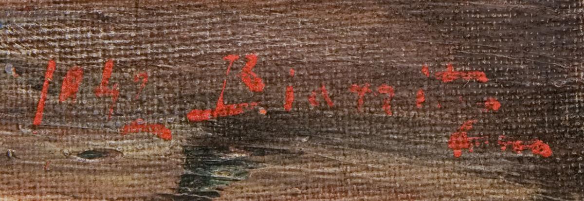 Monumental lush areal arrangement, partly with impasto application of paint. Dating inscribed with Biarritz. Heavy stucco frame back with artist's name.
