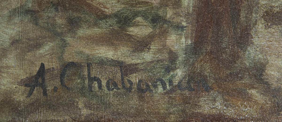 Chabanian, landscape painter, draftsman, graphic artist. Father of Heran Chaban. Studied at the College Murad-Rafaelyan in Venice. Resided in Paris from 1894, then studied at the Académie Julian, pupil of Gustave Moreau. Co-founder of the Société des Artistes de Marines. 1910 Chevalier of the Legion of Honor * Partner auction miner.