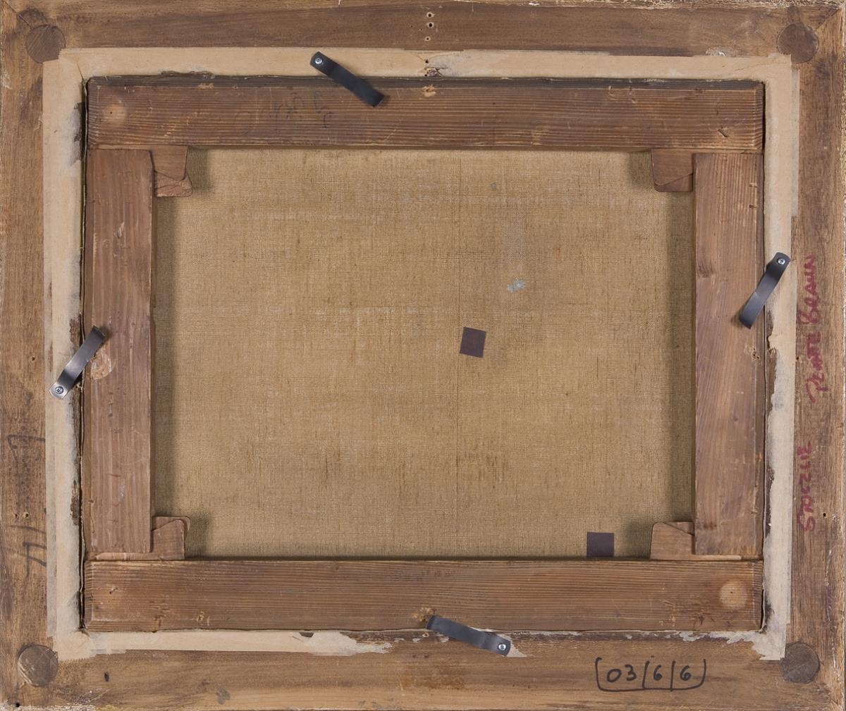 Original stretcher, as new profile frame with gilded stucco strip. Rear two small patches.