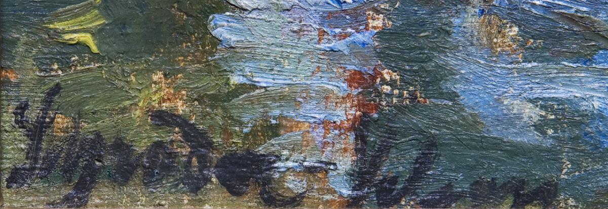 Impressionist scene with impasto application of paint. Bronzed frame.