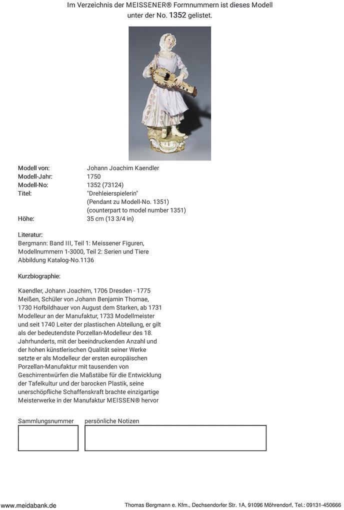 Kaendler, court sculptor and modeller. Since 1731 at the manufactory. From 1749 head of the sculptural department. An ingenious creator of the European porcelain figure * Partner auction Bergmann.