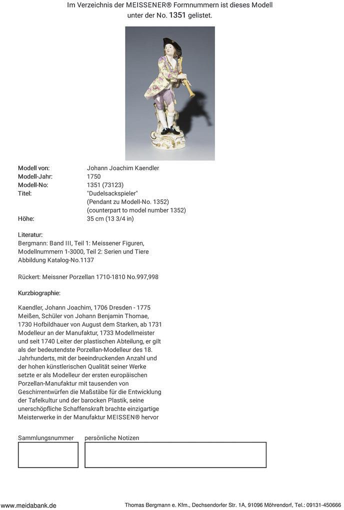 Kaendler, court sculptor and modeller. Since 1731 at the manufactory. From 1749 head of the plastic department. An ingenious creator of the European porcelain figure * Partner auction Bergmann.