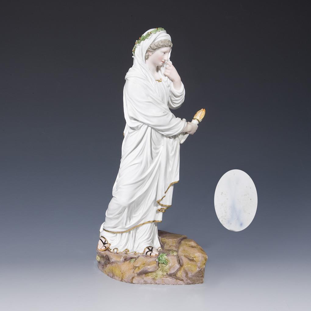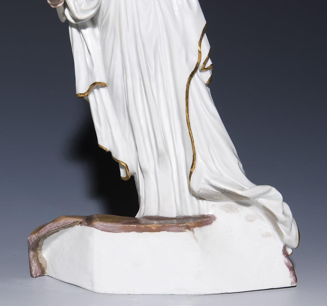 Model by Johann Carl Schönheit 1781. single figure of a 2-part group. Colorfully painted, gold painted. Unglazed base, incised mark, sword mark. Torch, a hand, small mantle corner, back a base corner, some leaves restored, some leaves bumped.