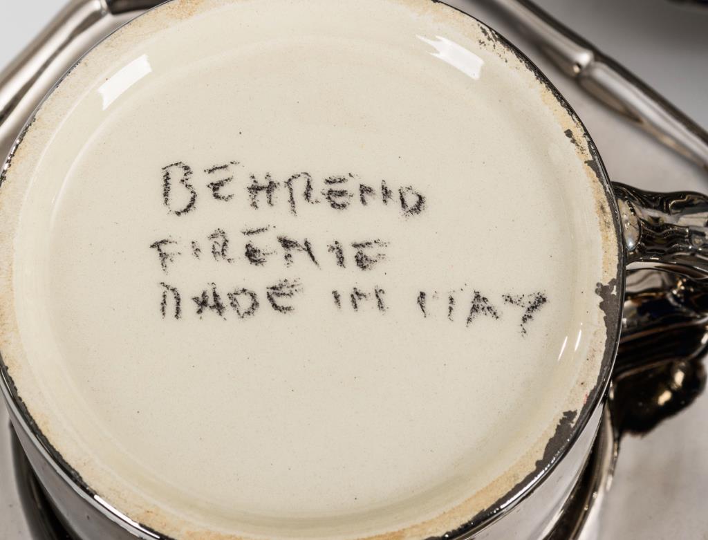 Steingut, silberfarben glasiert.Ø 19,5 cm und 14,5 cm, H 6 cm.