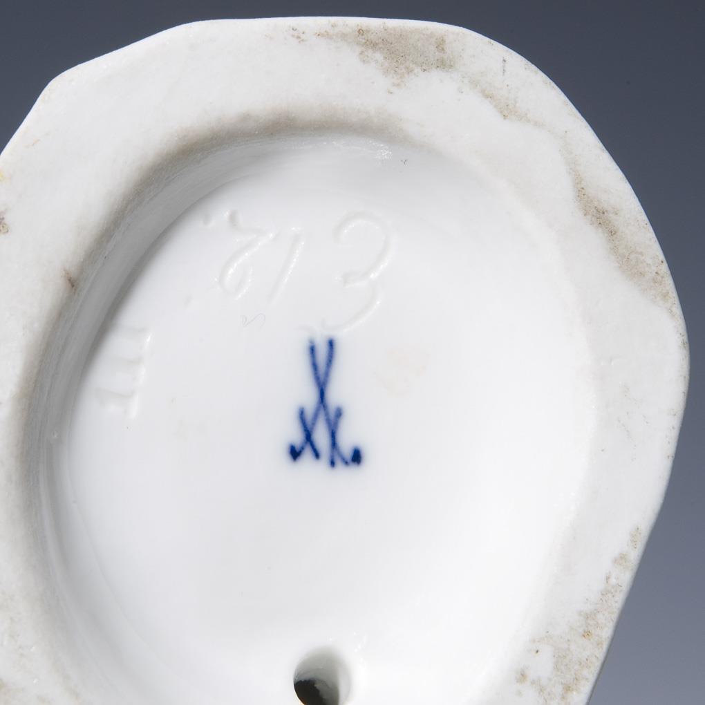 Model by Johann Joachim Kaendler and associates 1772-1774. Pendant to model no. E 11. Colored painted, gold painted. Incised mark, press mark, painter's mark, sword mark. Beet leaf bumped, staff missing, pommel restored.