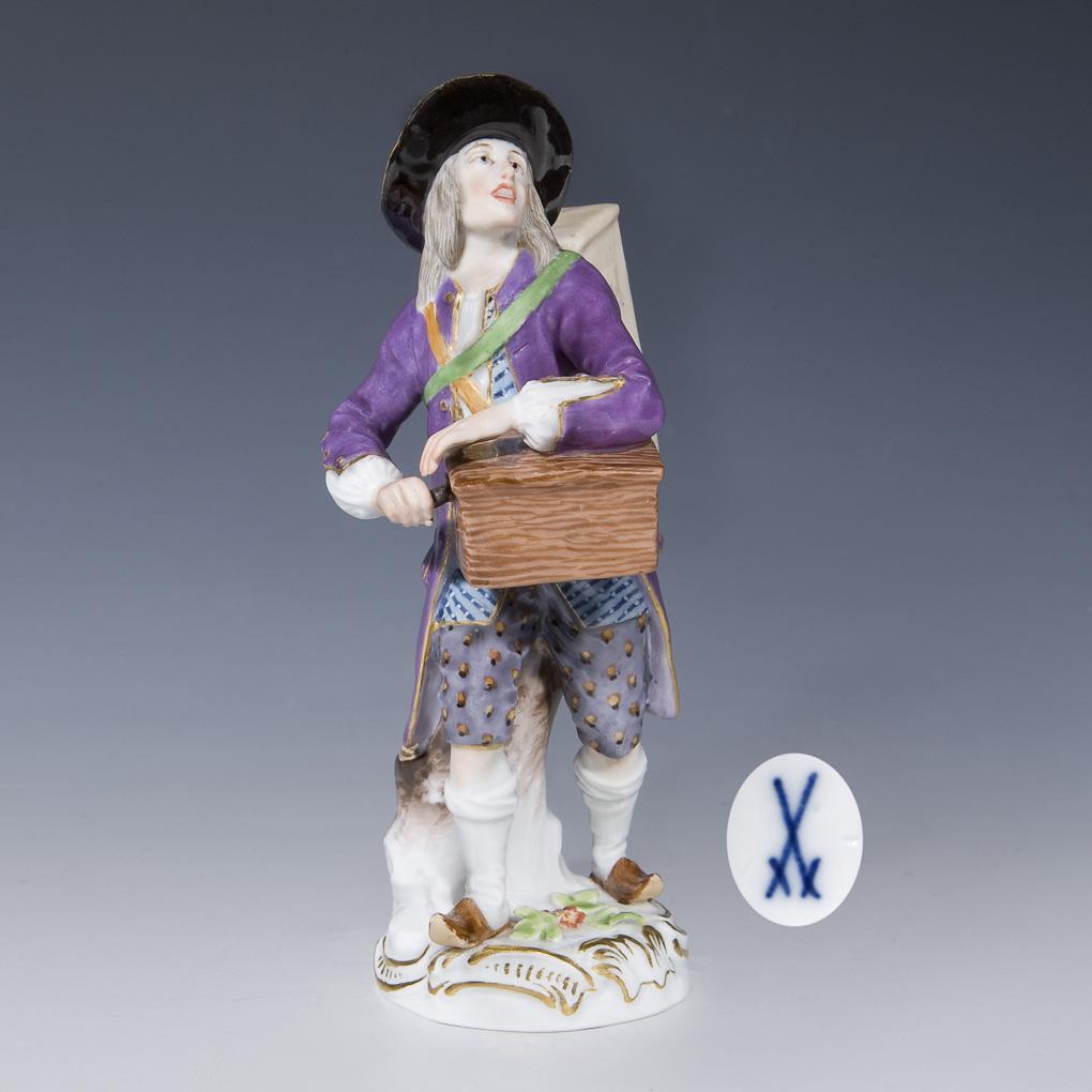 Model by Peter Reinicke 1753-1754. From a series of 34 figures. Colorfully painted, gold painted. Incised mark, press mark, painter's mark, sword mark.