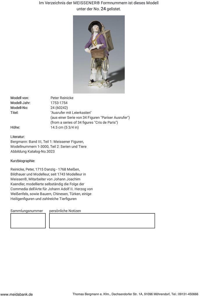 Parisian crier: organ grinder. Meissen.