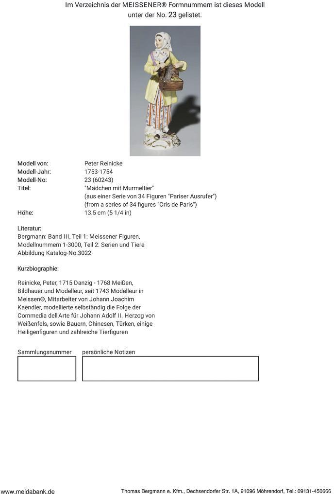 Parisian crier: girl with marmot. Meissen.