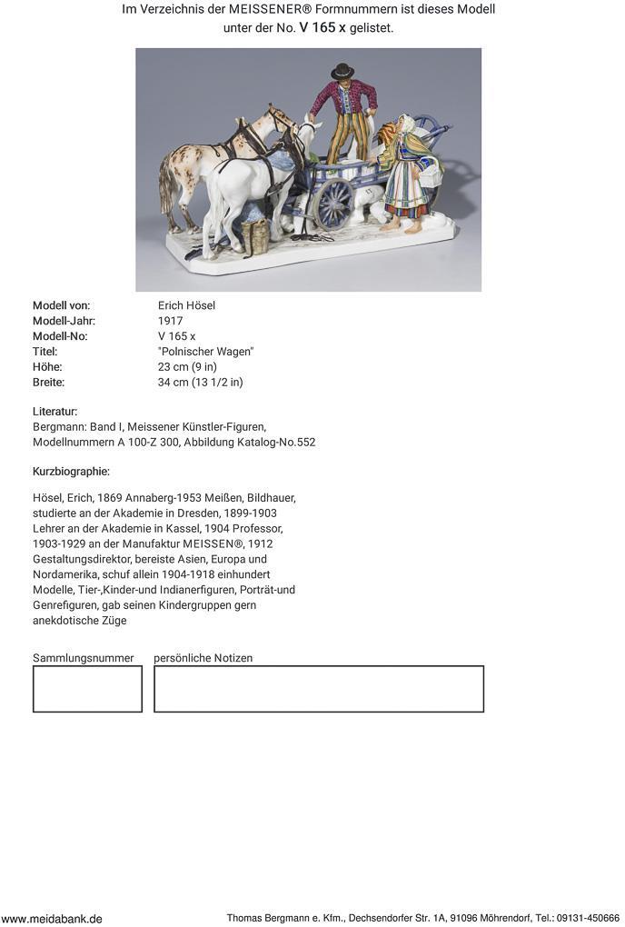 Hösel, sculptor, studied at the Academy in Dresden. 1899-1903 teacher at the academy in Kassel. 1904 professor. 1903-1929 at the manufactory, 1912 design director * Partner auction Bergmann.