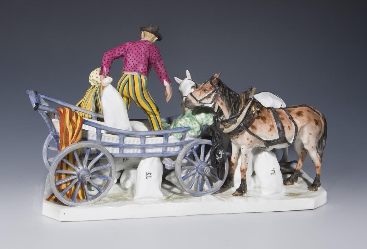 Rare Art Nouveau figural group: Polish Car. Meissen.