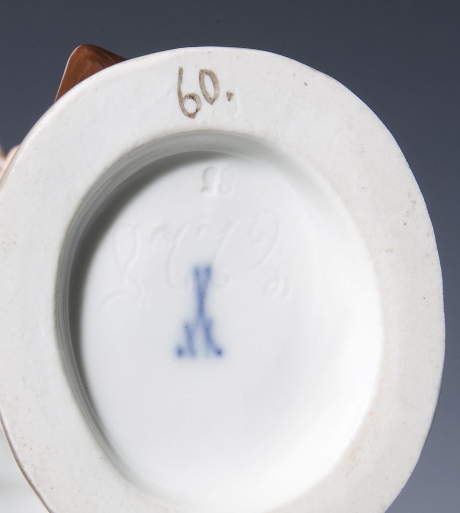 King, sculptor, porcelain maker in Thuringia. In 1896, Meissen purchased eight figure models from him. 1897-1932 modeller at the Meissen manufactory. From him are numerous figures and groups * Partner auction Bergmann.