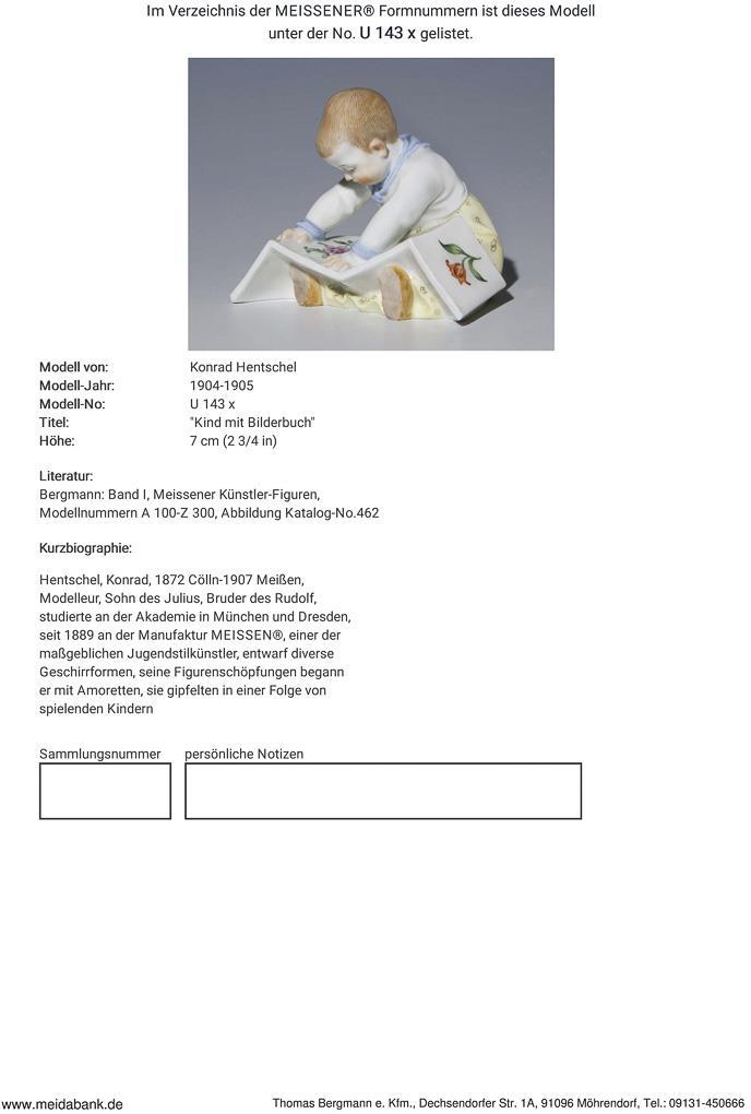 Art Nouveau figure: child with picture book. Meissen.