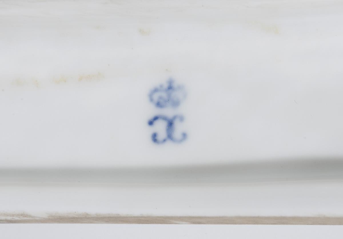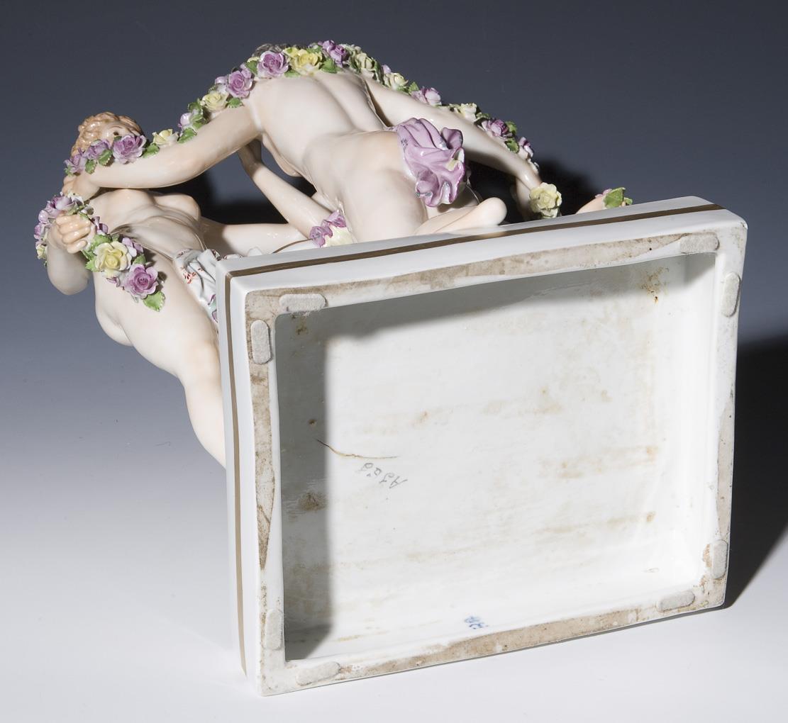 After a Meissen model by Christian Gottfried Jüchtzer 1784-1785. colored painted, gold staffiert. Bottom mark. One hand with flower restored, few flowers slightly bumped, glaze defect on the back of the base.