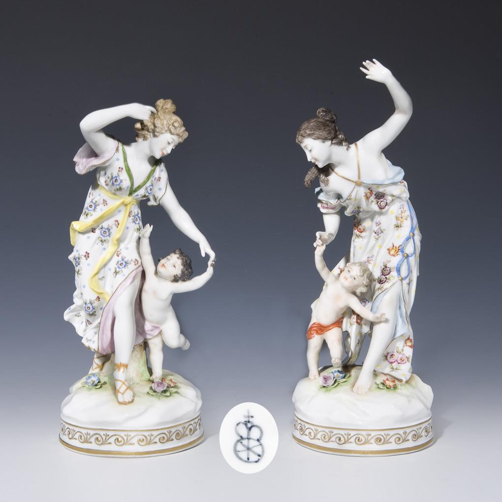Pair of figure groups: Dancing girls with cupids. Bock-Wallendorf, Thuringia.
