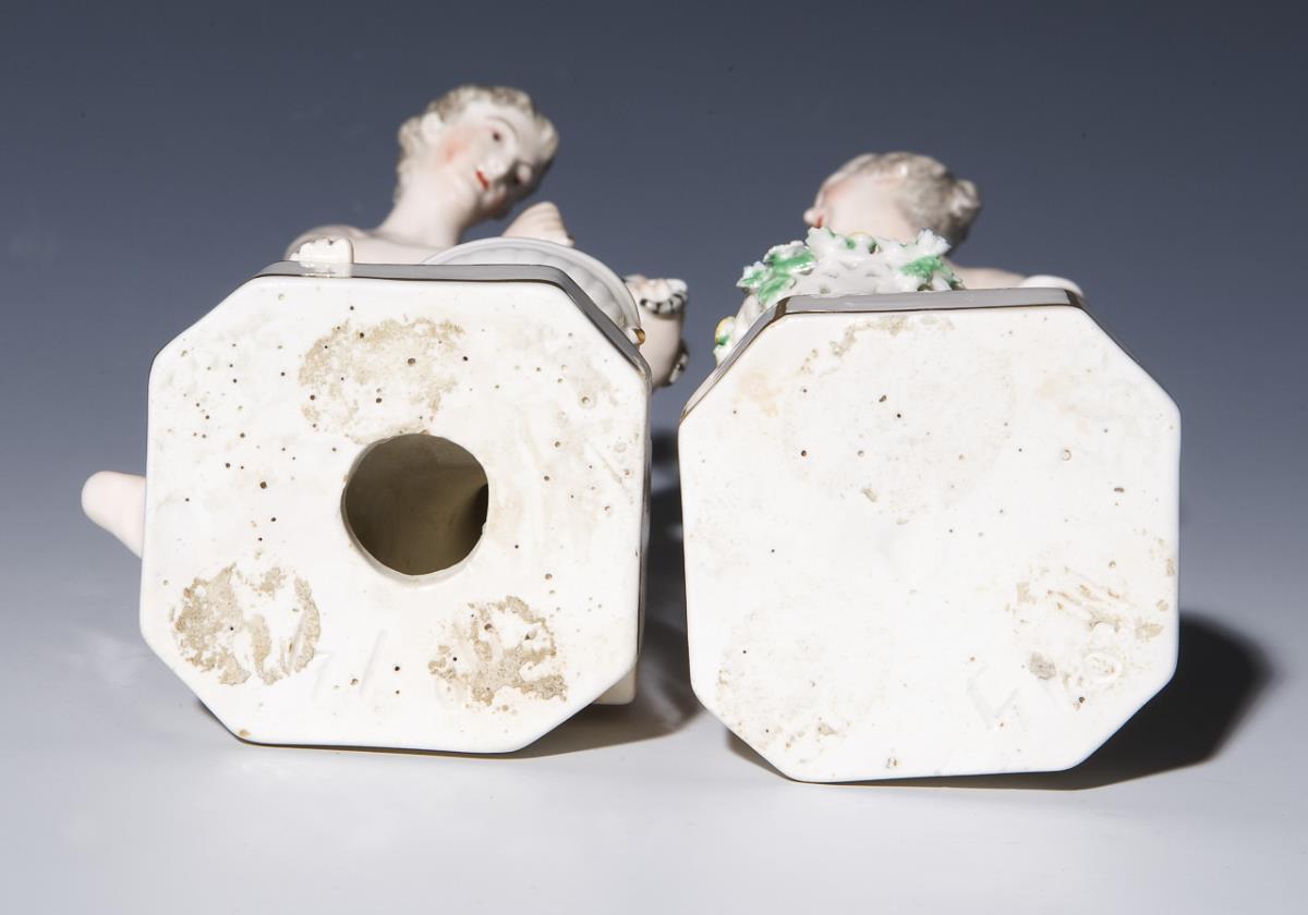 Painted in color. Unglazed base, incised marks, without manufactory mark. Butcher minimally bumped, small glaze defects.