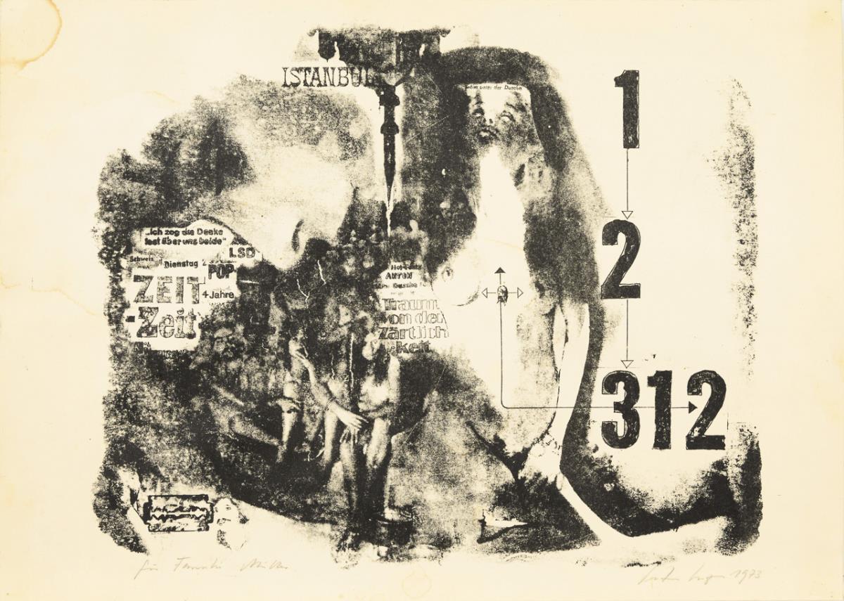 With dedication "For family Müller". Water stains on upper margin, some traces of grip, verso with traces of glue.