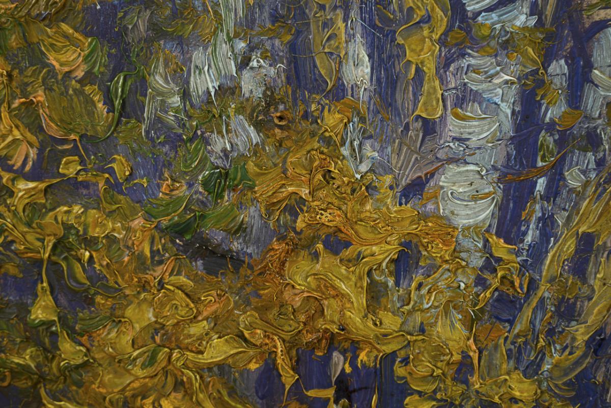 Oil/painted cardboard. Signed lower right, signed / titled on the verso.