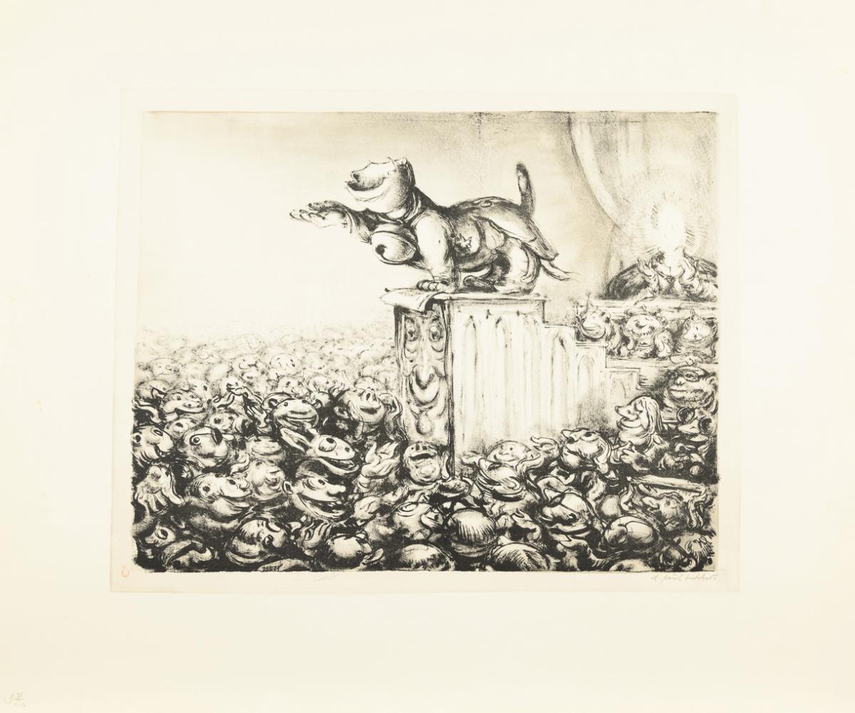 Lithograph. Pencil signature, red stamp "Clan Press", pencil mark, handwritten title on verso. [1971].