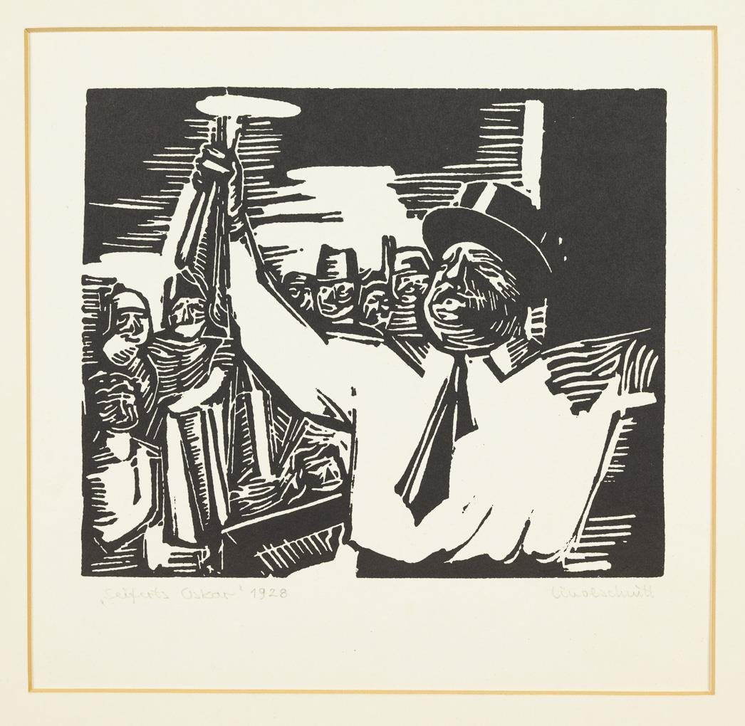 Lino cut. Pencil signature, verso estate stamp "Karl Völker", estate ballpoint signature "Horst Völker". 1928.
