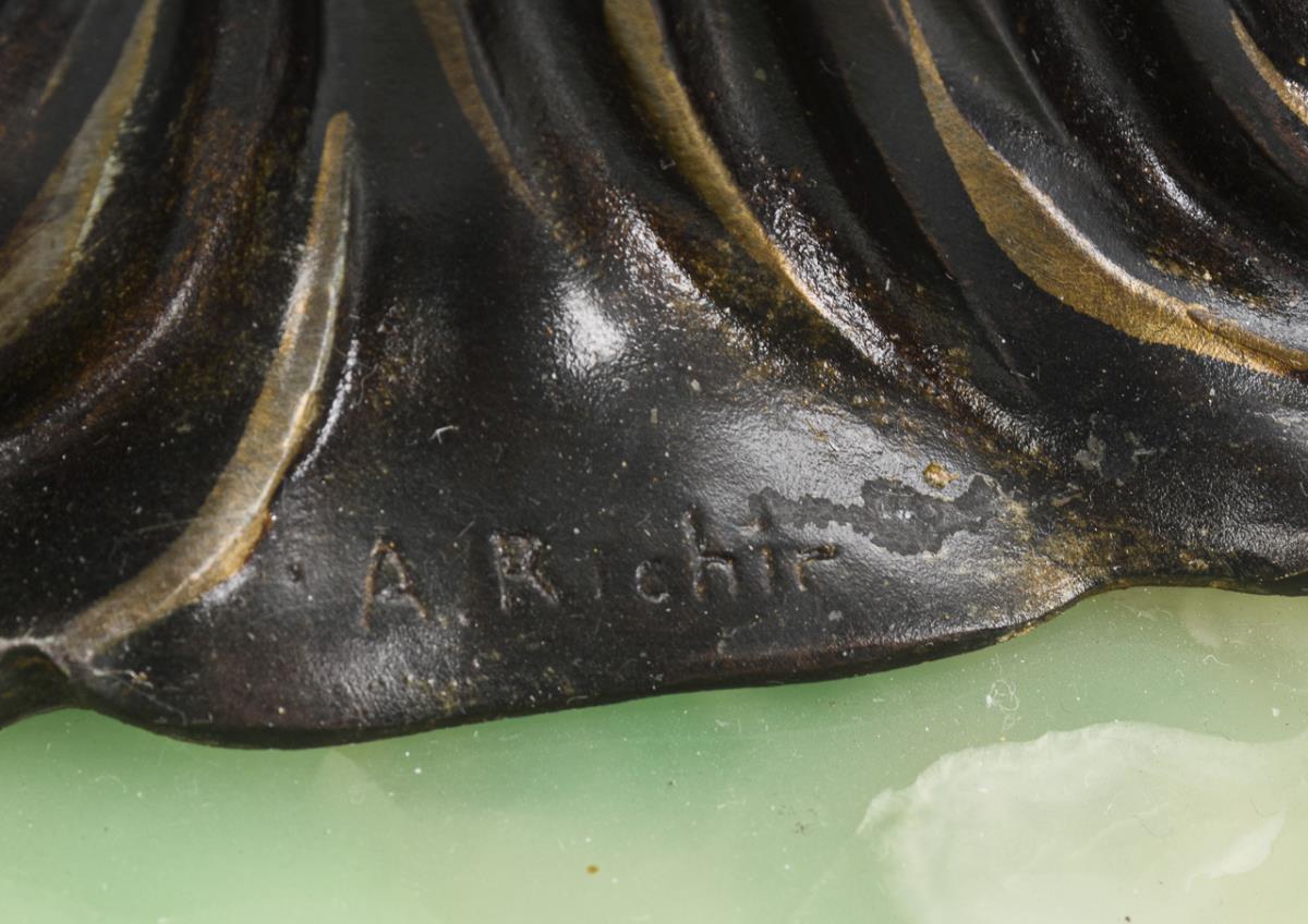 Various colored marble, bronzed cast metal and light plastic. Approx. 25 x 61 x 15.5 cm. 14.7 kg.