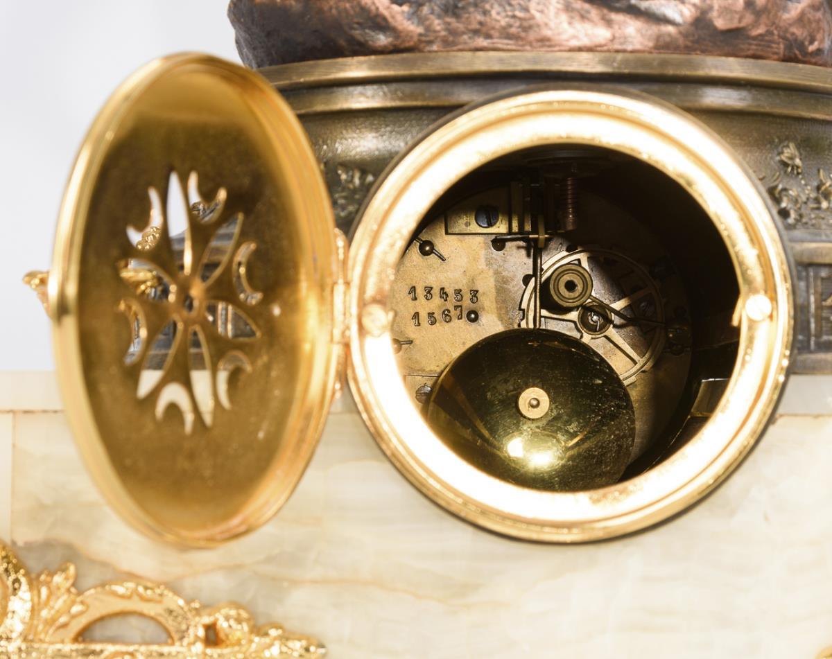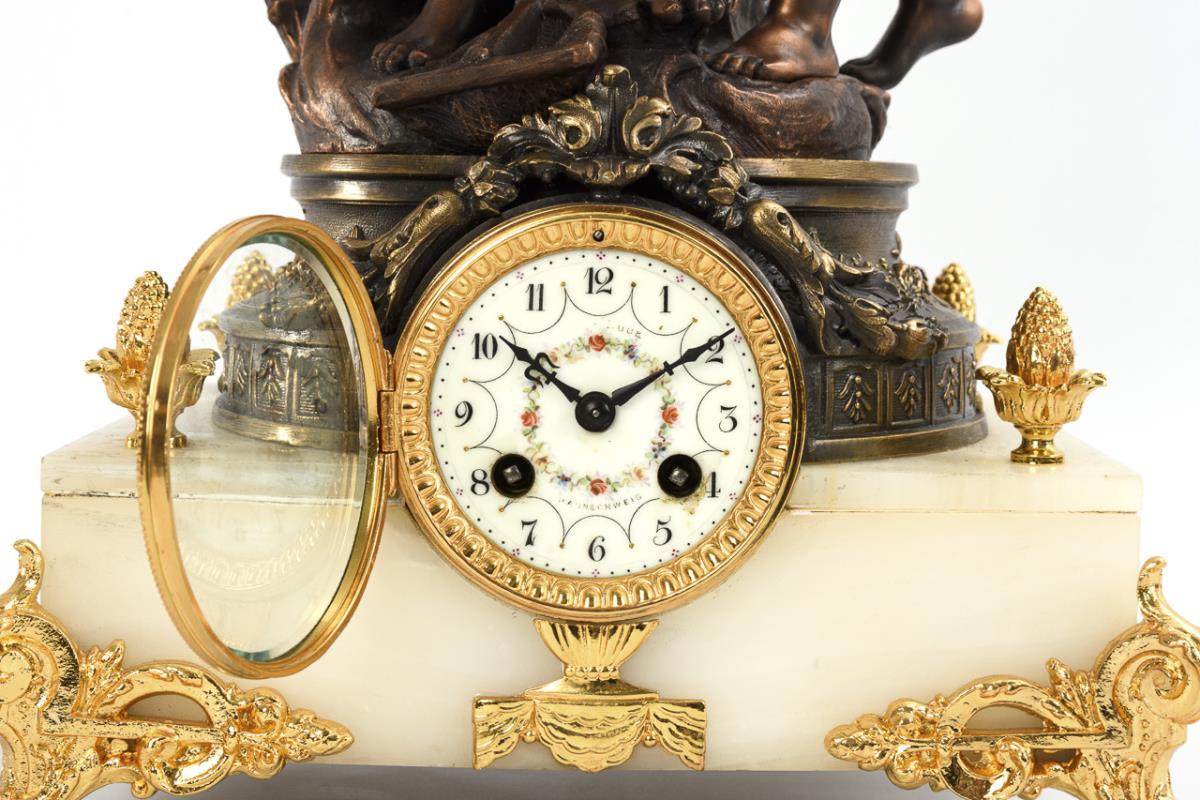 White alabaster, bronzed metal casting, bronze/brass repainted. Approx. 60.5 x 32.5 x 29 cm. 12.1 kg.