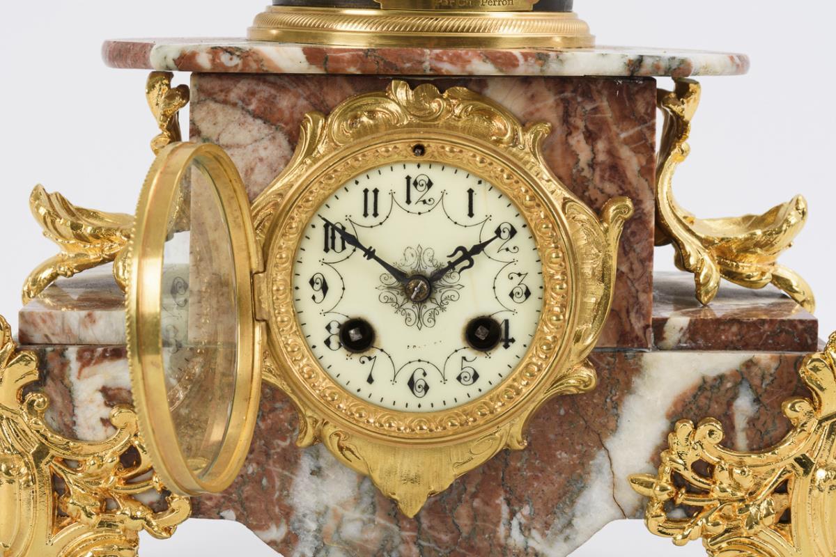 Red and white marble, bronzed metal casting, bronze/brass recast. Approx. 66 x 28.5 x 15.5 cm. 7.8 kg.