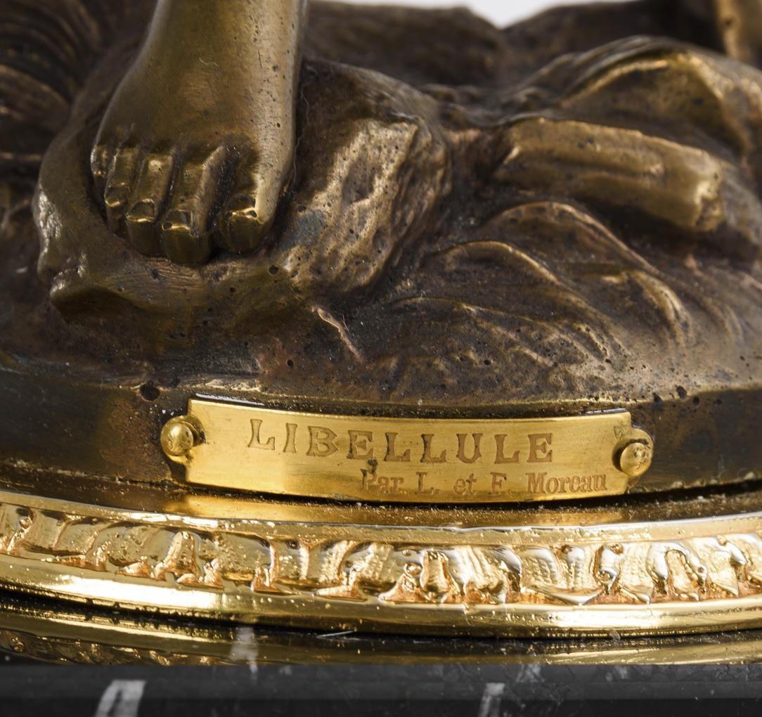 Bronze patinated, gilt bronze plinth, black marble base. Inscribed, foundry mark "Fabrication Francaise, made in France, Paris", inscribed/titled on the front plate. H 46 / 56 cm. 7,3 kg.