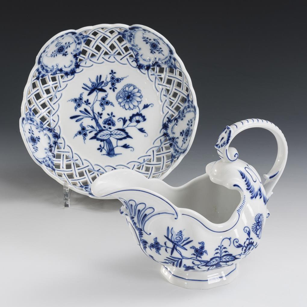 Onion pattern sauciere and breakthrough bowl. Meissen.