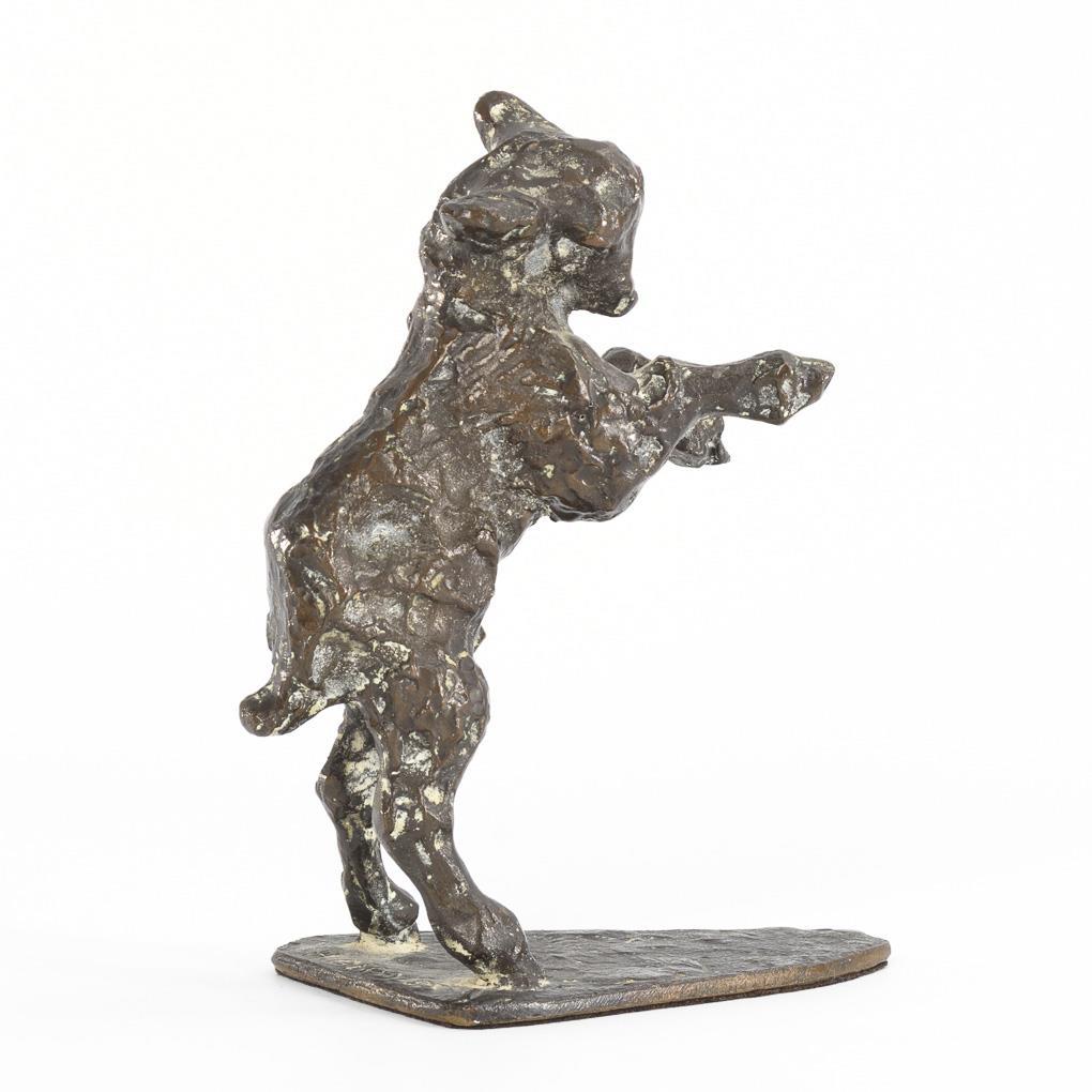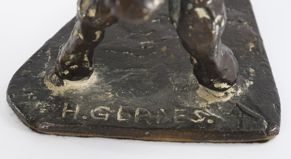 Bronze patinated with white residues. Inscribed. H 20,5 cm.