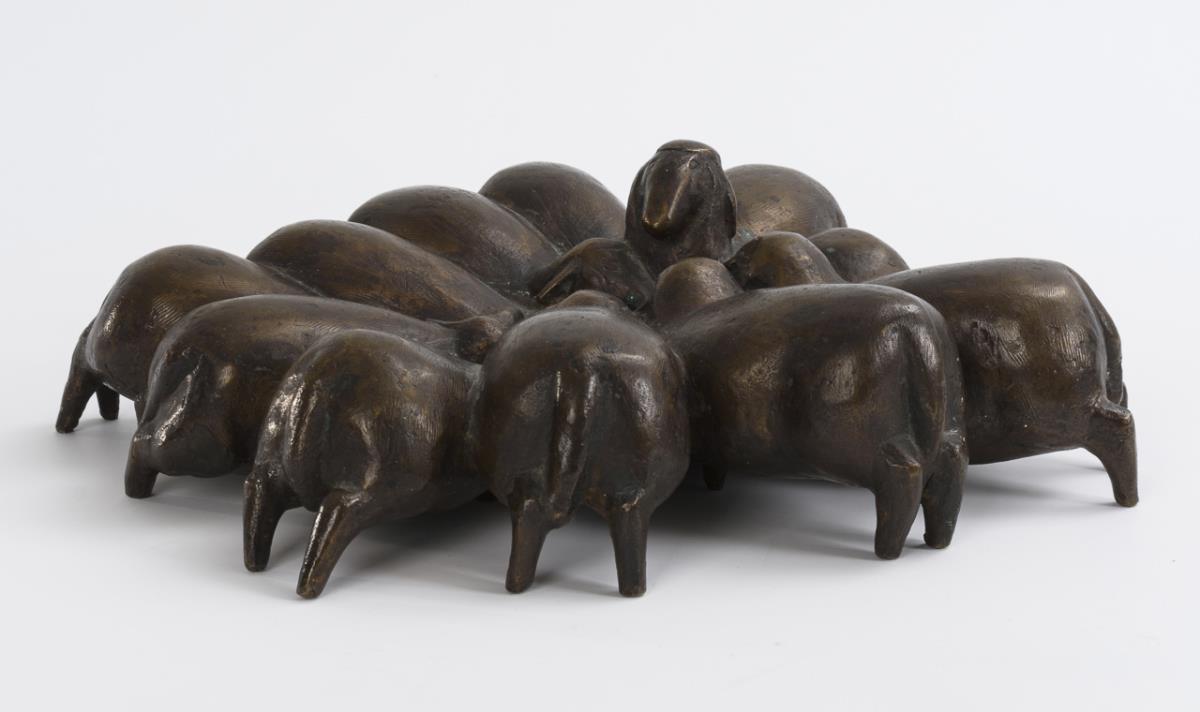 Bronze patinated. Marked with date (19)86. h 10 cm, Ø maximum 36 cm. 10 kg.