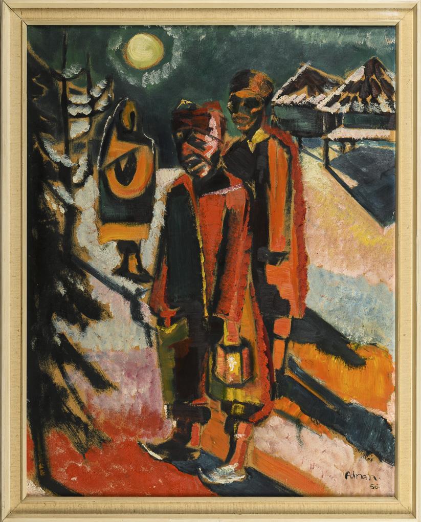Oil / paper / cardboard. Signed lower right. (19)56.