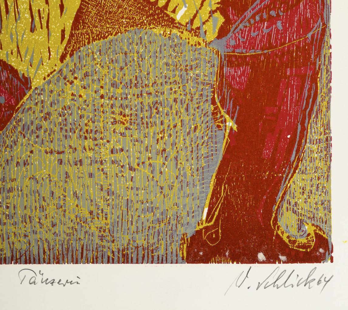 Color woodcut from 2 printing blocks. Pencil signature. [19]64. proof, copy: 10/20.
