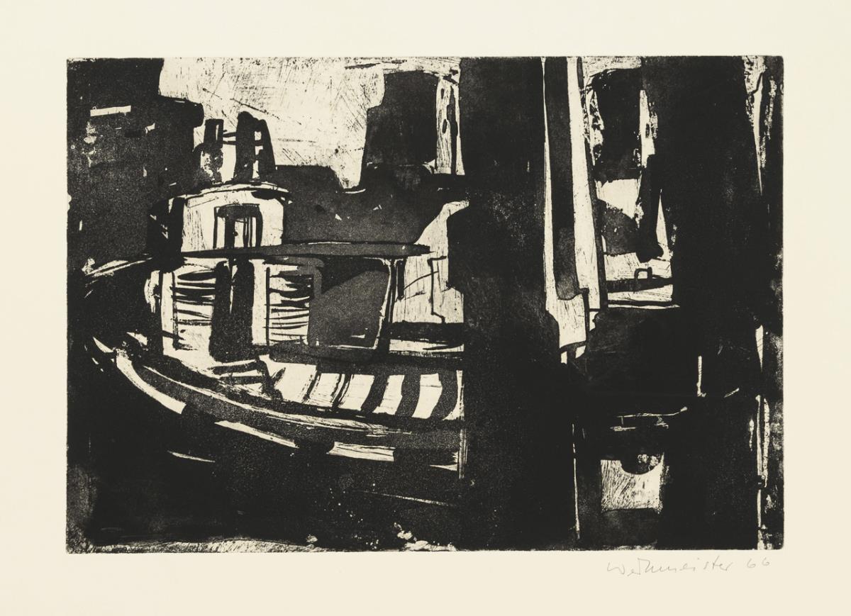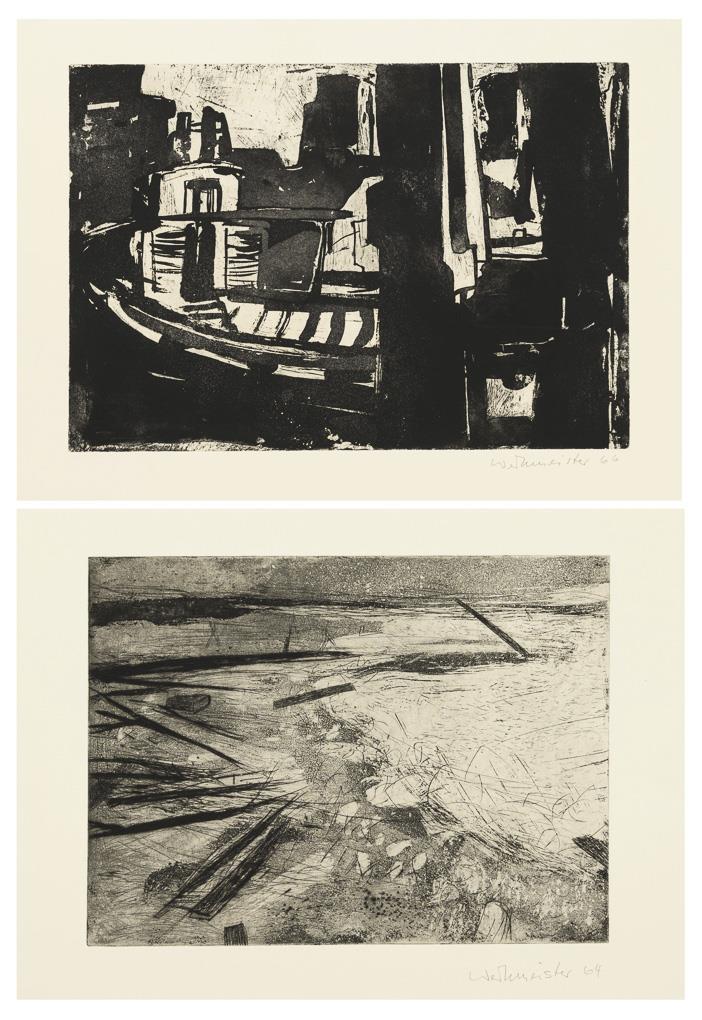 "Strandgut", [19]64, printing plate: 21,3 x 28,4 cm, sheet: 38,5 x 53,5 cm | "Nächtlicher Hafen", [19]66, printing plate: 33,5 x 48,5 cm, sheet: 53,5 x 77 cm.