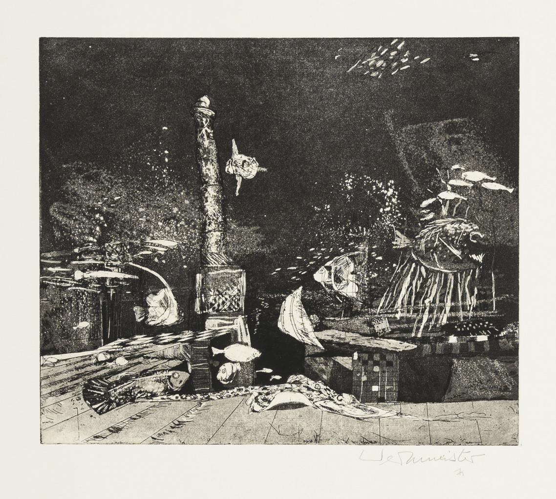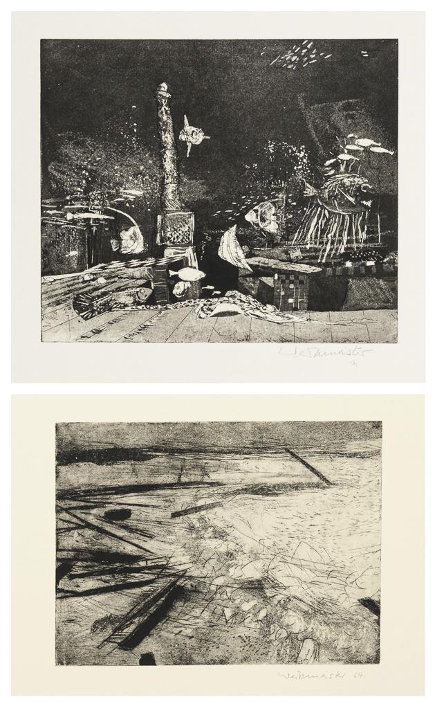 "Strandgut", [19]64, printing plate: 21,3 x 28,4 cm, sheet: 38,4 x 53,2 cm and "Atlantis", [19]71, printing plate: 24,7 x 29,2 cm, sheet: 65 x 48,4 cm.