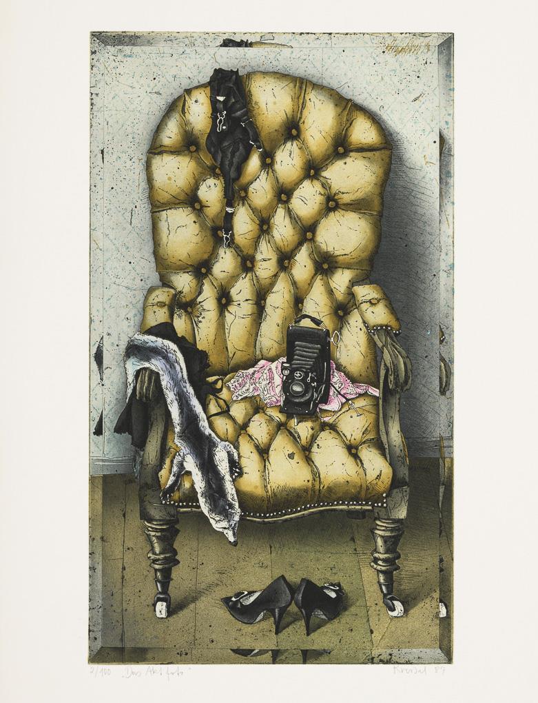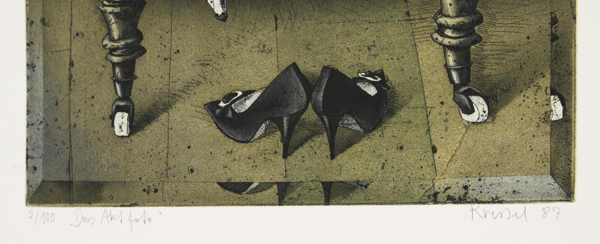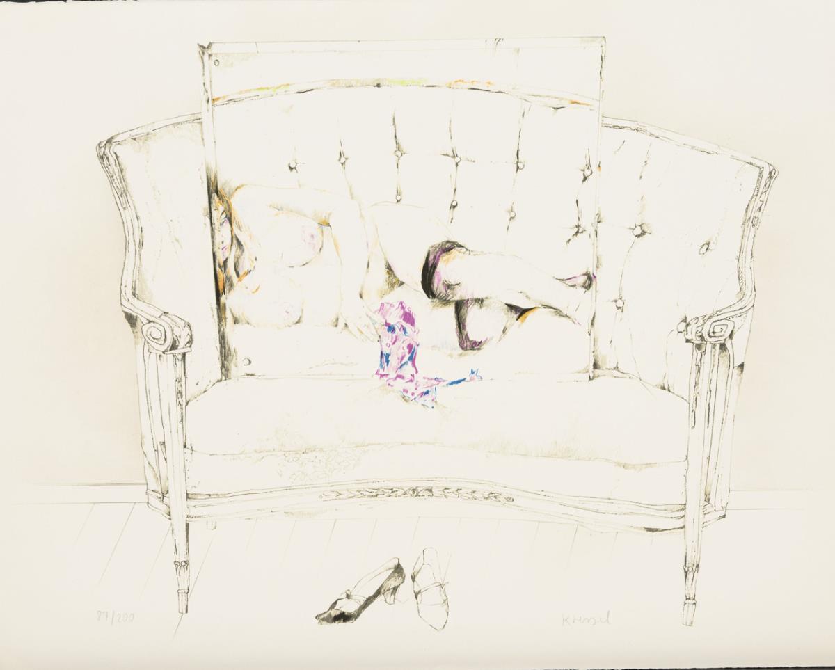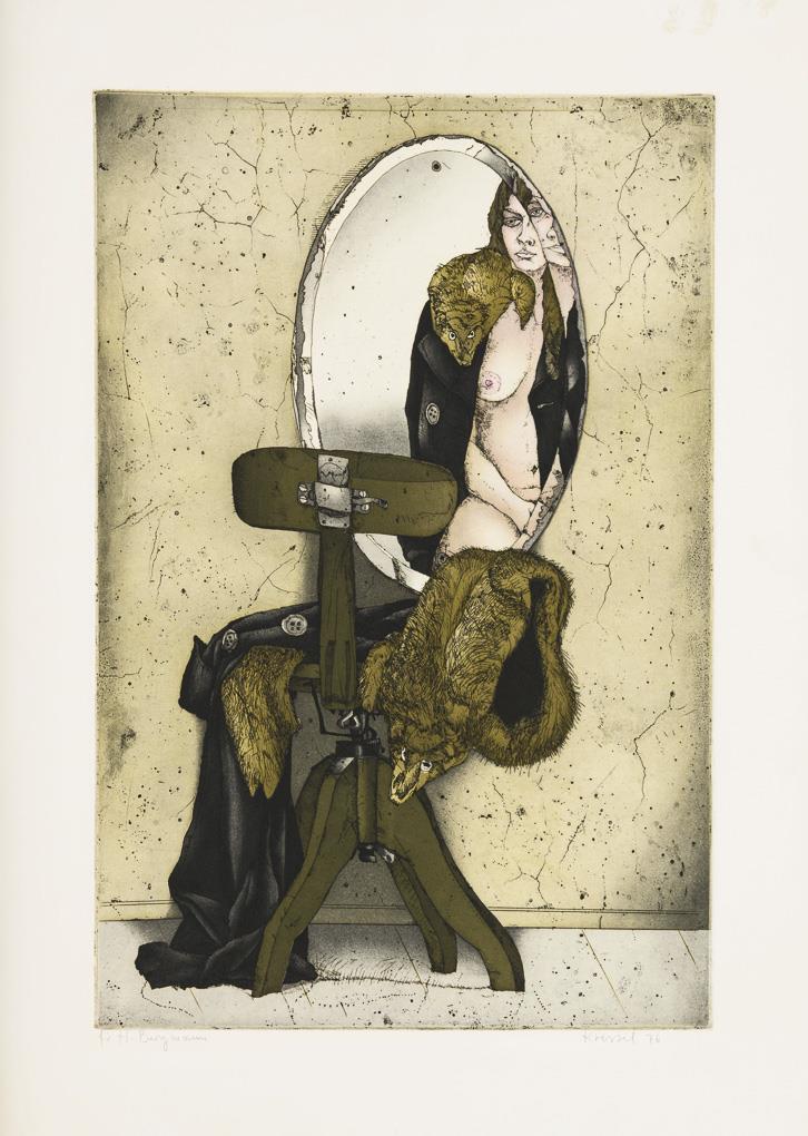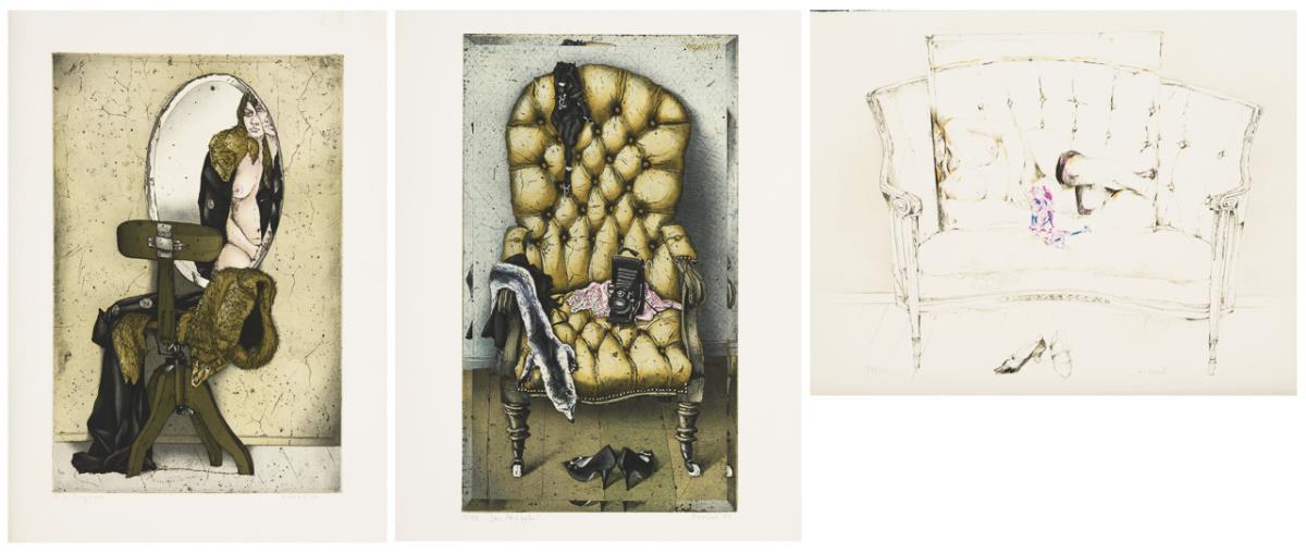 Female Nude with Fox Fur, copy: 34/100, [19]76, printing plate: 59,3 x 39,3 cm, sheet: 73,6 x 53 cm, upper margin somewhat soiled | "The Nude Photo", copy: 2/100, [19]87, printing plate: 54 x 31.5 cm, sheet: 76 x 50.5 cm | Female Nude in a Mirror, colored lithograph, copy: 87/200, sheet: 52 x 68 cm, marginal area minimally creased.