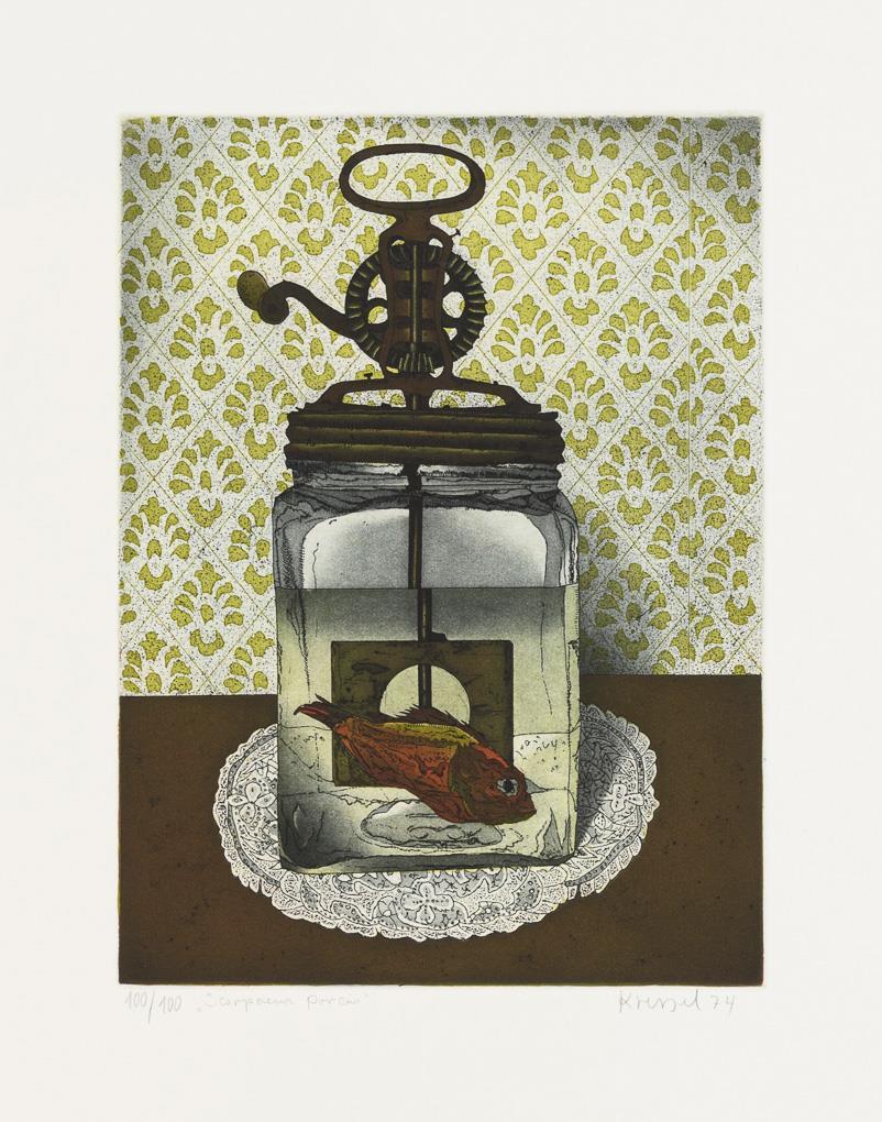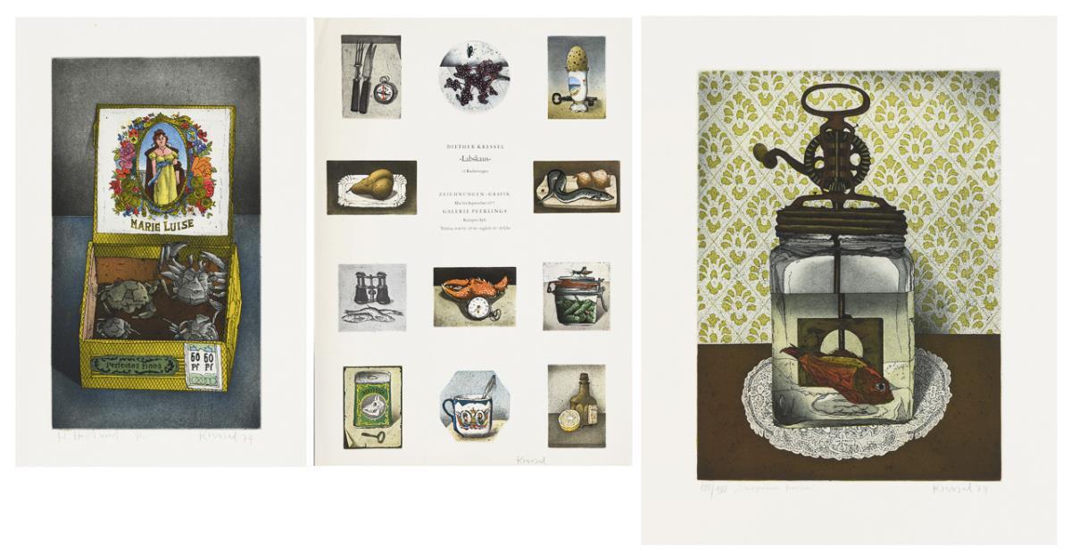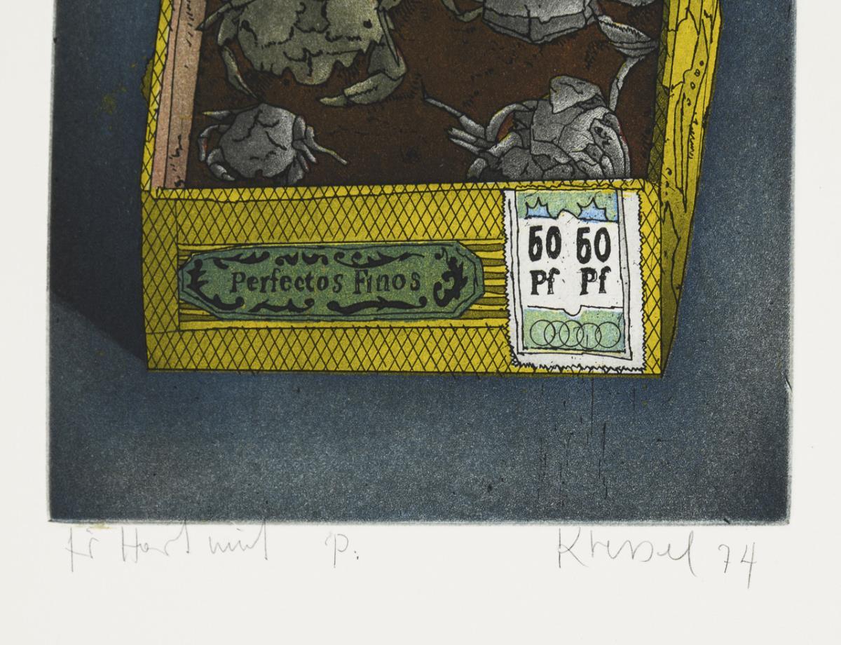 "Perfectos Finos", with dedication "For Hartmut P.", [19]74, printing plate: 29.3 x 16.5 cm, sheet: 56.4 x 37.1 cm | Poster "Labskaus", color offset print, sheet: 54 x 38.5 cm, upper left corner with small crease | "Scorpaena Porcus", copy: 100/100, [19]74, printing plate: 39.7 x 29.5 cm, sheet: 75 x 56.4 cm.